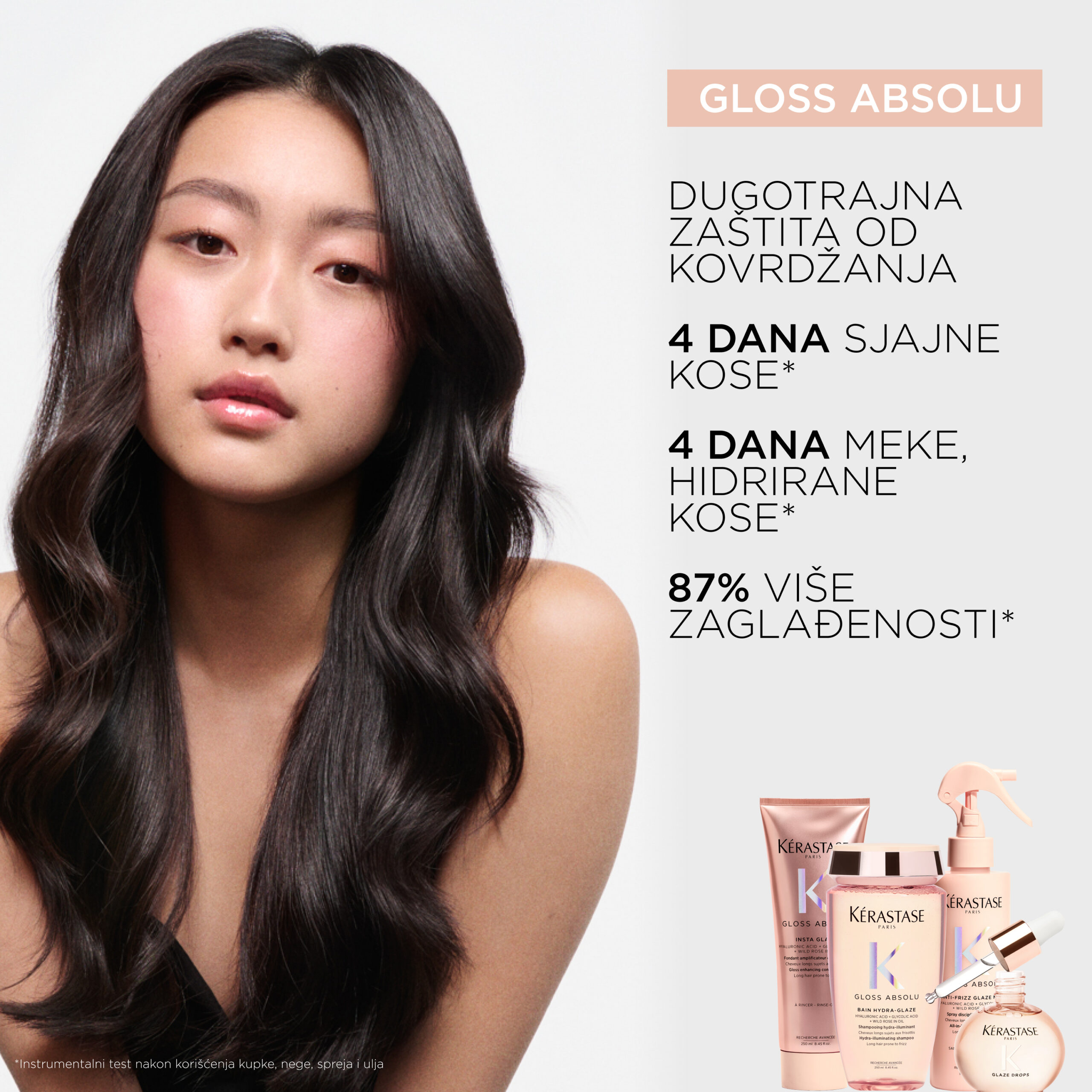 Gloss Absolu je linija namenjena dugoj kosi koja je sklona kovrdžanju. Sadrži formulu obogaćenu moćnim kiselinama i uljem divlje ruže.