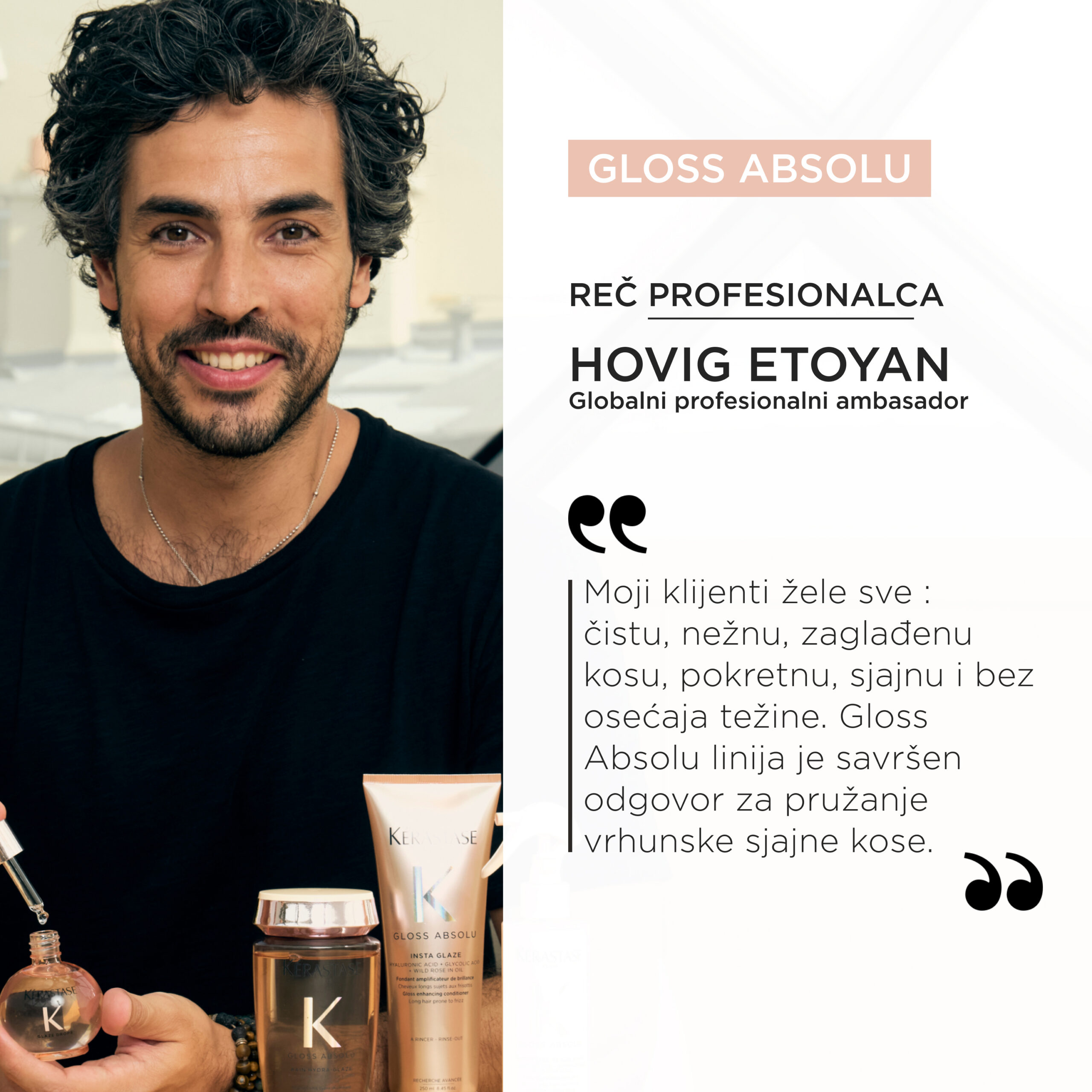 Gloss Absolu je linija namenjena dugoj kosi koja je sklona kovrdžanju. Sadrži formulu obogaćenu moćnim kiselinama i uljem divlje ruže.