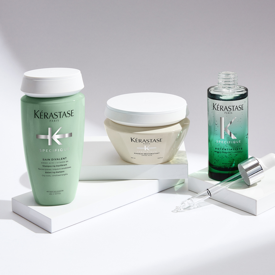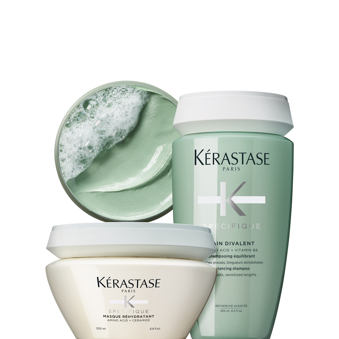 | Upotreba | Nakon pranja kose sa Kérastase Specifique Bain Divalent Balancing Shampoo, upijte višak vode peškirom i nanesite masku na dužinu i krajeve i ostavite da deluje 5 minuta. Nakon toga temeljno isperite kosu i nastavite dalje korake nege i stilizovanja. Koristiti 1-2 puta nedeljno. |